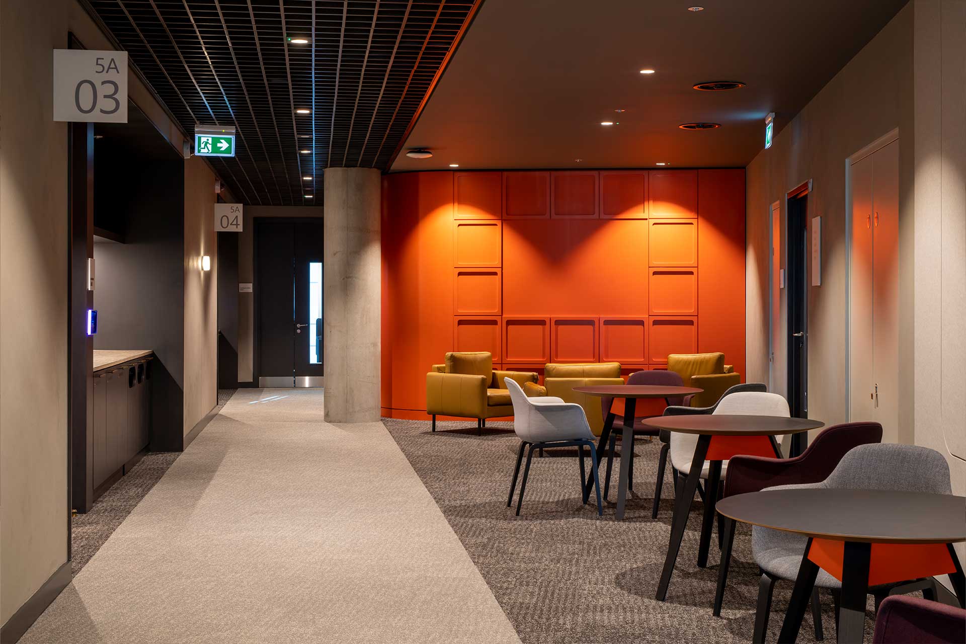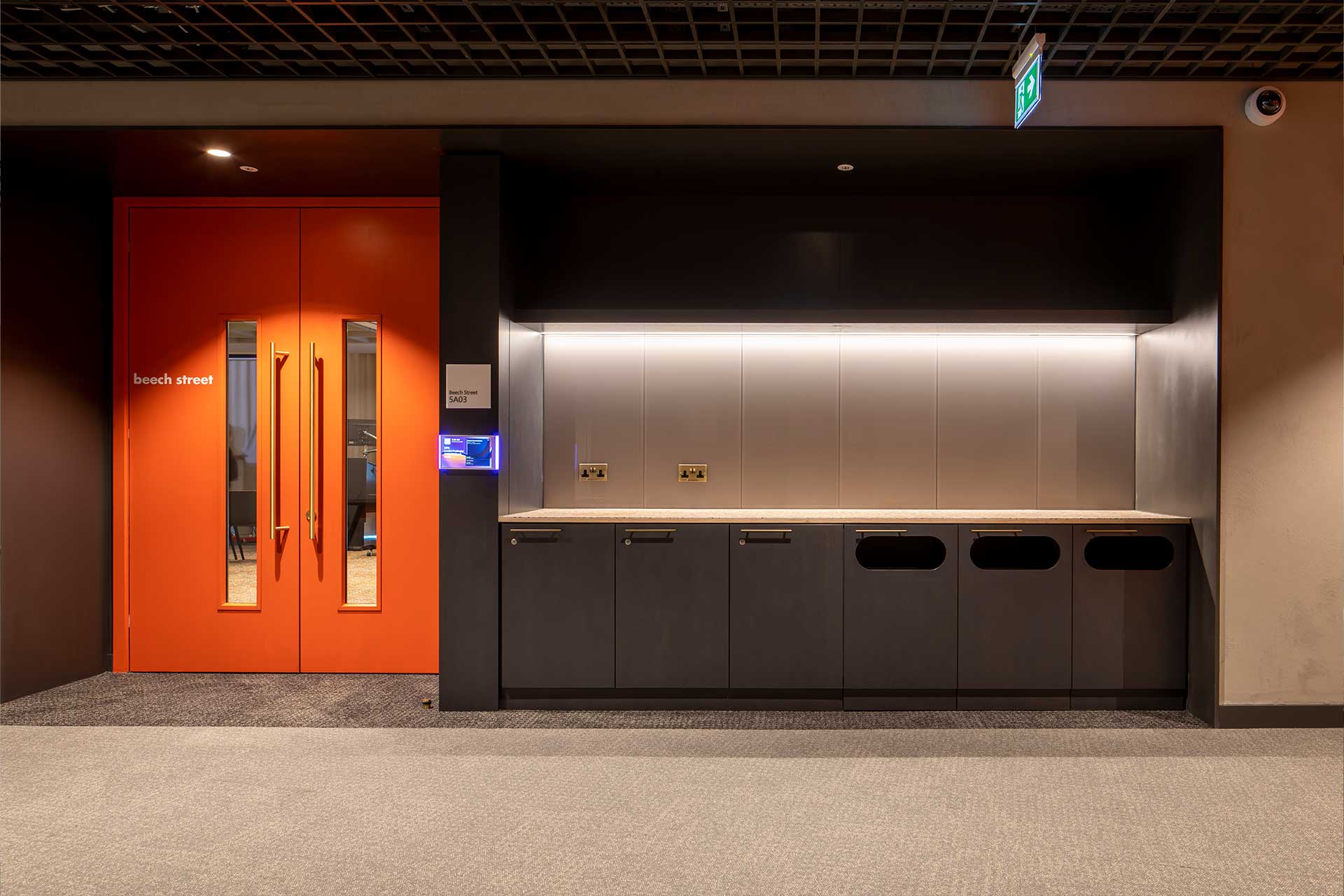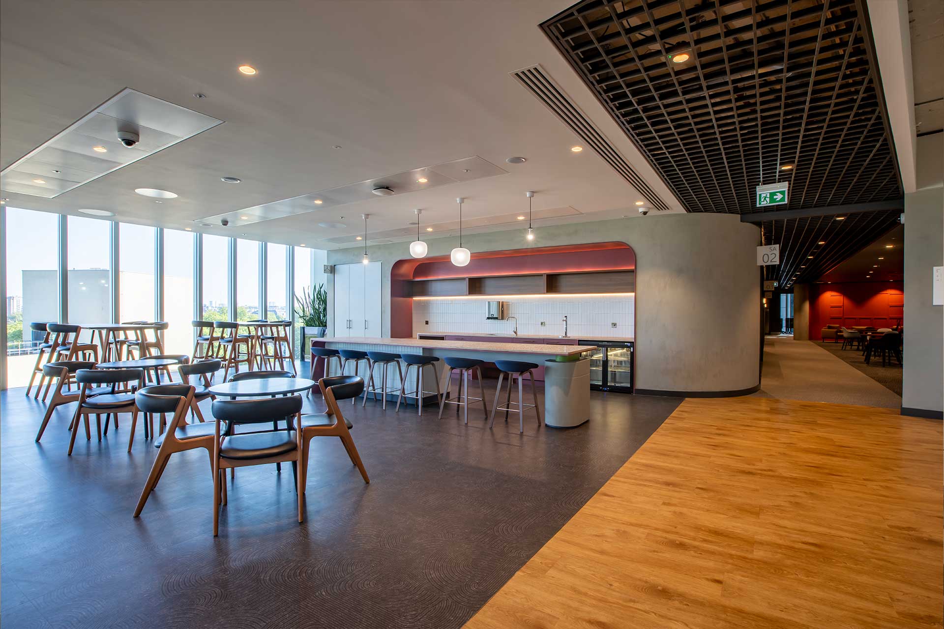To support our client’s evolving workspace needs, we delivered social spaces across two floors of their existing building. Level 4 Transformation: We converted the former facilities management office and tea point into a contemporary social hub. The design features a sophisticated barista bar with integrated bulkhead storage, complemented by a custom-designed concierge desk, enhancing the employee experience. Level 5 Upgrade: We removed the existing canteen and kitchen to create adaptable, multi-functional rooms. These rooms are equipped with folding walls and a state-of-the-art AV system and are supported by an open-plan breakout area that includes a kitchenette, an island bar, and ample storage. Following this success, we were awarded further fit out work on Level 7, reinforcing our client partnership.