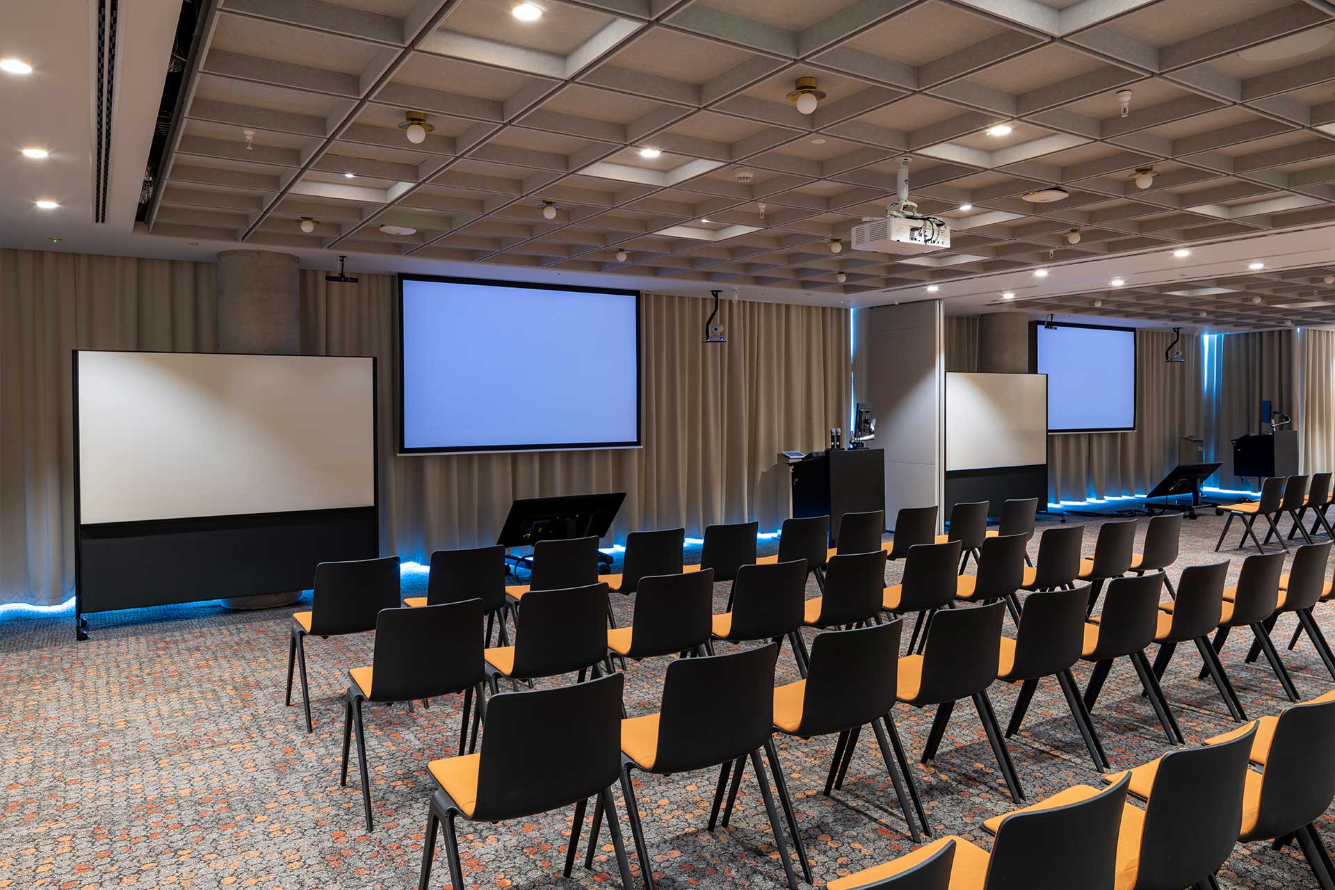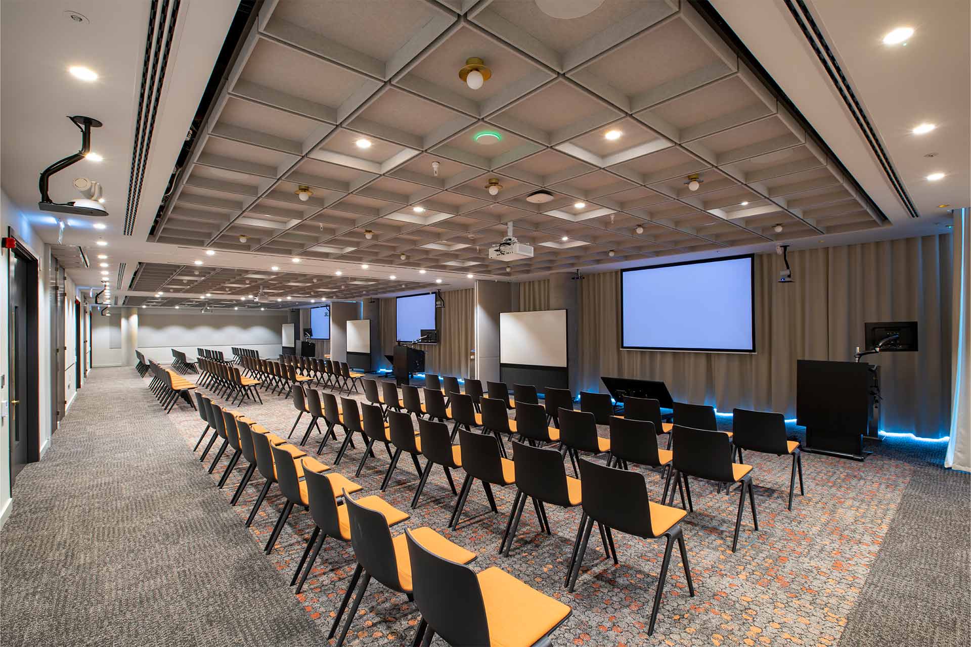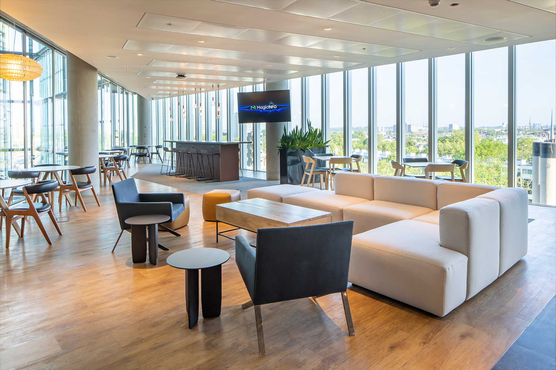 To support our client’s evolving workspace needs, we delivered social spaces across two floors of their existing building. Level 4 Transformation: We converted the former facilities management office and tea point into a contemporary social hub. The design features a sophisticated barista bar with integrated bulkhead storage, complemented by a custom-designed concierge desk, enhancing the employee experience. Level 5 Upgrade: We removed the existing canteen and kitchen to create adaptable, multi-functional rooms. These rooms are equipped with folding walls and a state-of-the-art AV system and are supported by an open-plan breakout area that includes a kitchenette, an island bar, and ample storage. Following this success, we were awarded further fit out work on Level 7, reinforcing our client partnership.