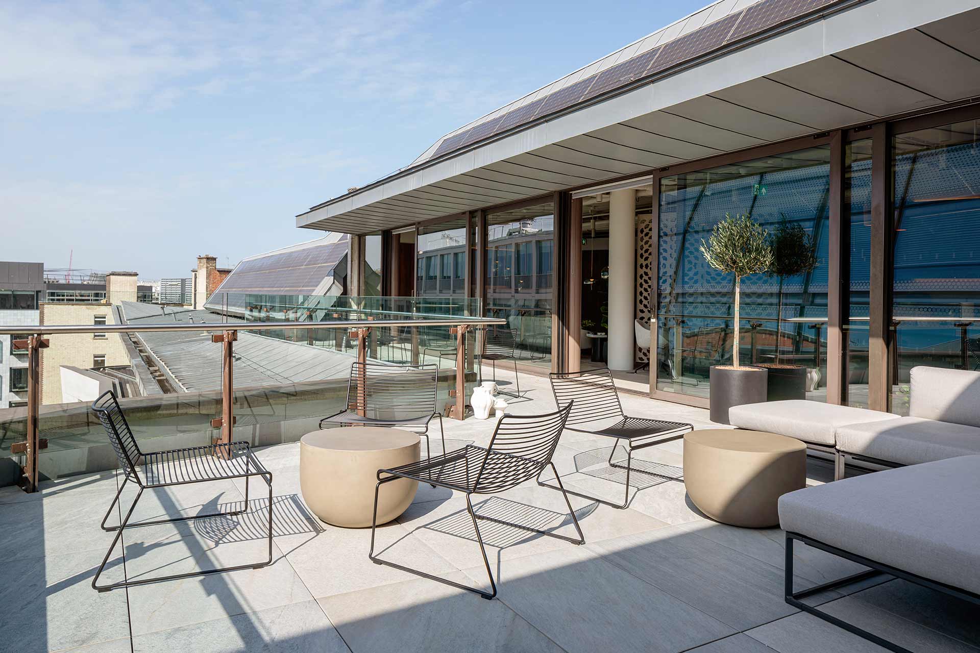 Works featured modern open-plan workspaces, meeting rooms, high-spec WCs, tea points, a refreshed reception, and a fully upgraded terrace.
