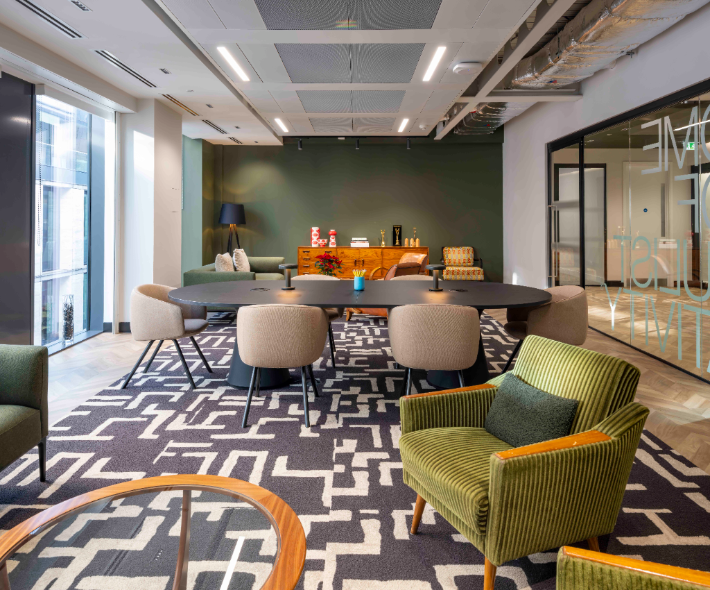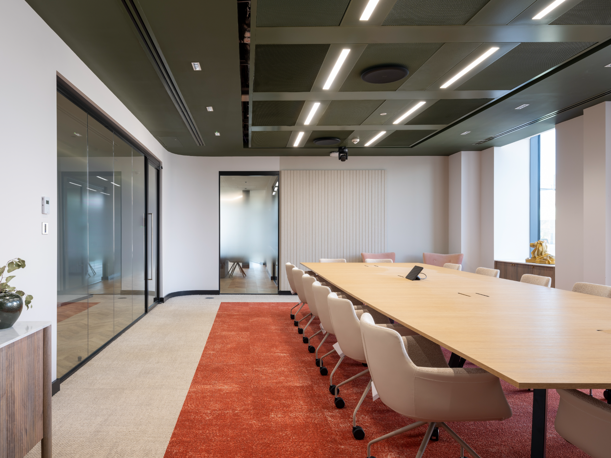 With the completion date brought forward, the accelerated programme meant much of the design had to be developed on site. Works included a range of meeting rooms with varying AV capabilities, office tea points, and breakout areas, all requiring close coordination, rapid decision‑making, and clear communication across all teams.